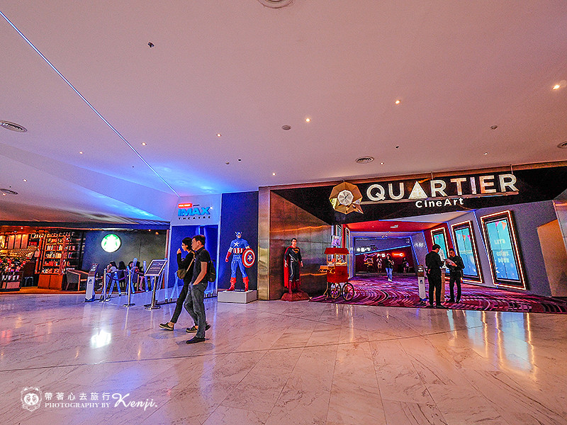 ▲继续往上逛,还有电影院,而这间电影院的周围都有着许多复仇者联盟、DC旗下的英雄角色,把这里打造的像似复仇者联盟基地的fu,很酷。