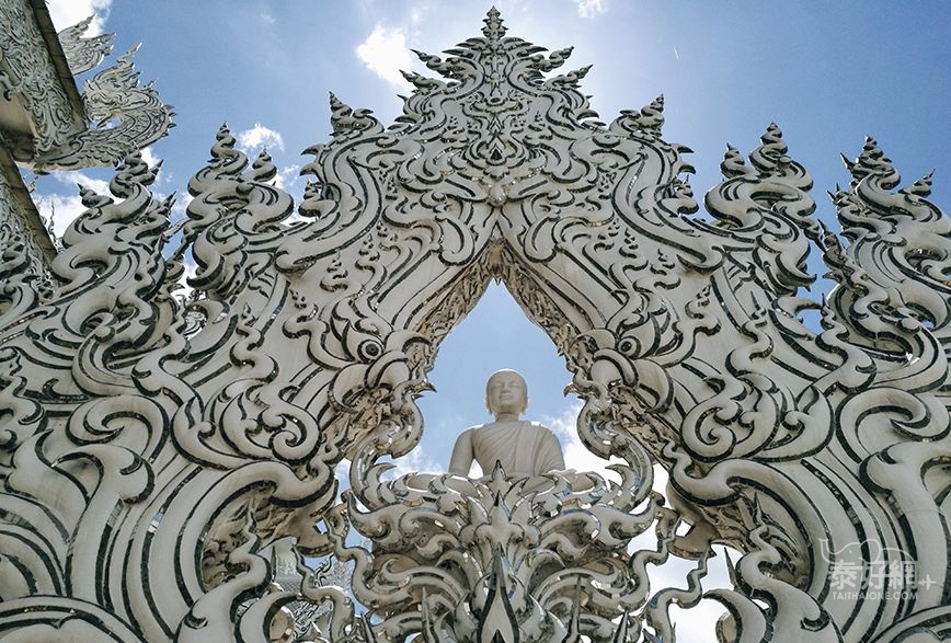 整个大气的建筑只用上纯白色彩与反射玻璃,纯白的屋顶,纯白的墙壁,纯白的基座,镶嵌在墙面的玻璃时不时反射出耀眼的银光,分别代表佛陀的纯洁与智慧,加上独特的设计元素,多次被国外旅游媒体选为世界最美庙宇之一!