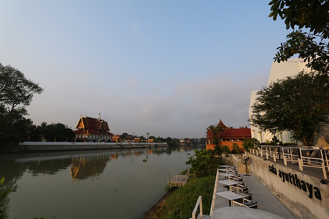 七点开始早餐供应,强烈建议七点半就来河边用餐,有温暖的日出色温,气温也不至于炎热。太阳从面对Wat Phutthaisawan的左方升起,右方落下,因此Sala Ayutthaya并无正背光的问题,日升日落都有卖点。